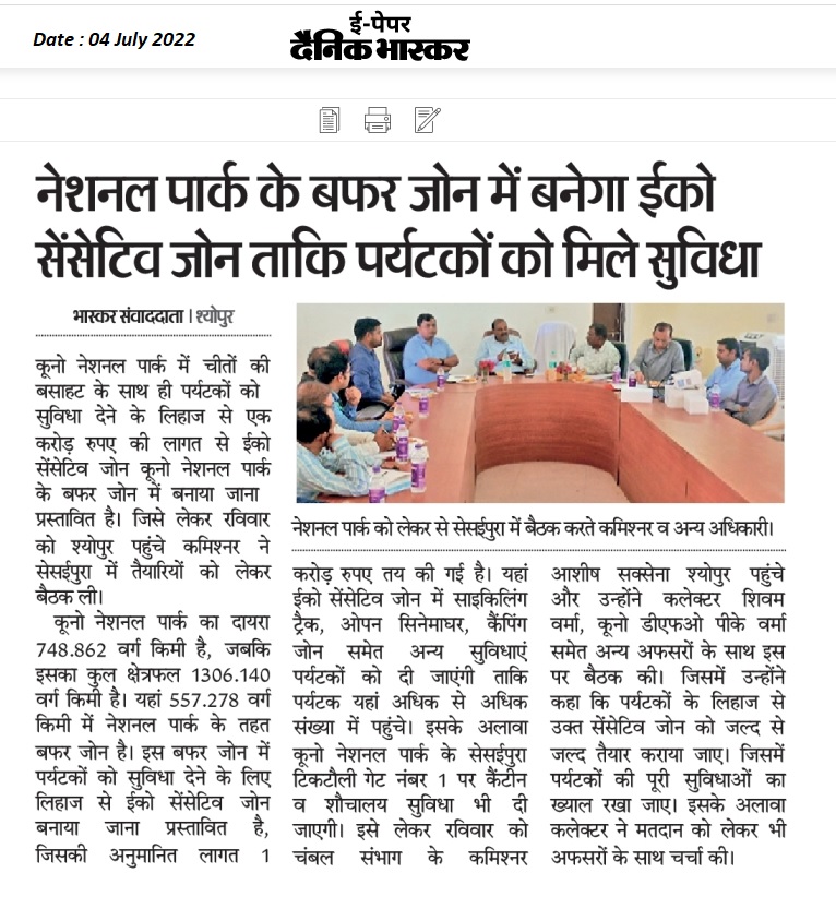 कूनो नेशनल पार्क के बफर जोन में बनेगा ईको सेंसिटिव जोन